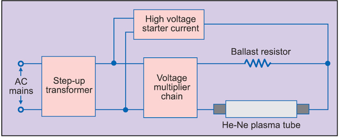 The generalised form of a gas-laser power supply essentially comprises a high-voltage generation circuit that provides the starting voltage, either in the form of a high-voltage trigger pulse or a DC voltage level, to initiate the gas discharge, and a power supply with current-limiting feature to deliver the steady-state current to sustain the discharge. Amplitude of high-voltage trigger pulse needs to be greater than the breakdown voltage of the gas mixture in question. The current-limiting feature is provided by a resistance called ballast resistance, which limits the discharge current to desired value.