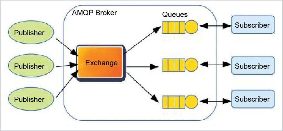 The AMQP protocol consists of a set of components that route and store messages within a broker service, with a set of rules for wiring the components together. The AMQP protocol enables client applications to talk to the broker and interact with the AMQP model. This model has the following three components, which are connected into processing chains in the server to create the desired functionality.