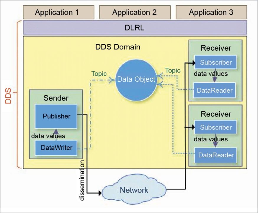 The DDS protocol has two main layers: Data Centric Publish-Subscribe (DCPS) and Data-Local Reconstruction Layer (DLRL). DCPS performs the task of delivering the information to subscribers, and the DLRL layer provides an interface to DCPS functionalities, enabling the sharing of distributed data among IoT enabled objects.
