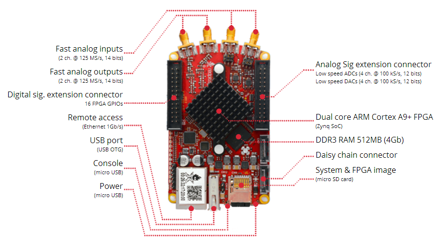 TEACHERS & PROFESSORS. Red Pitaya is a compact replacement for several expensive instruments and also a universal teaching tool. It enables learning of WEB and embedded application programming, FPGA, signal processing, machine vision applications and it can be controlled by Matlab as well.