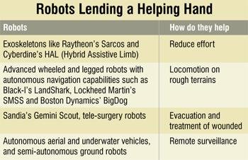 However, there is a new technology that takes a middle path—exoskeletons. Here, a human inside the robot combines the intelligence of the person with the strength of the exoskeleton. Raytheon’s Sarcos XOS exoskeleton arms and legs are one of the most well-known models for use in the military. The design weighs 68 kg and allows the wearer to lift 90 kg without any special effort. XOS 2 is a recent model featuring more fluid movement, increased power output and decreased power input.