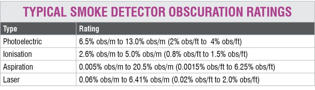 Obscuration is a unit of measurement that has become the standard definition of smoke detector sensitivity. It is the effect that smoke has on reducing visibility (higher concentrations of smoke result in higher obscuration levels, lowering visibility). Typical smoke detector obscuration rating is shown in the table.