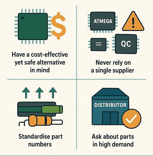 Let’s break those down. When sourcing components, always keep a cost-effective and reliable alternative in mind. High-volume microcontrollers such as the ATmega2560 are more likely to appear in grey markets, where counterfeit, remarked, or QC-rejected parts can circulate through secondary channels; so buying outside authorised channels is a gamble. Never rely on a single supplier—having two or even three can save you from this kind of supply nightmare. If you are developing multiple products, standardise part numbers for common components such as resistors, capacitors, and microcontrollers; this not only boosts order volumes and improves pricing but also simplifies sourcing.