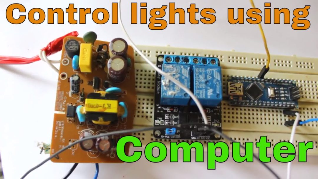 In this video, the presenter is going to build a system which is is capable of controlling the room light and fan using a personal computer. He has used Arduino Nano, a two-channel relay module, 12 V power supply, bread board and some jumper wires.